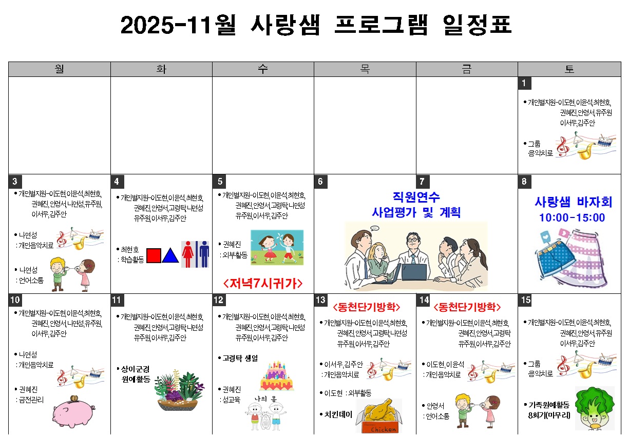 2025년 11월 사랑샘 프로그램 일정표입니다. 일정에 참고하세요.