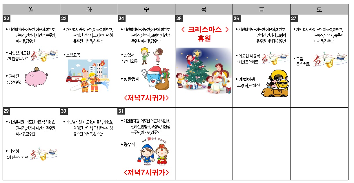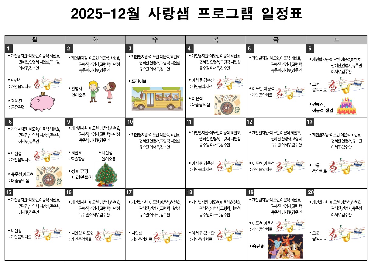 2025 - 12월 사랑샘 프로그램 일정표