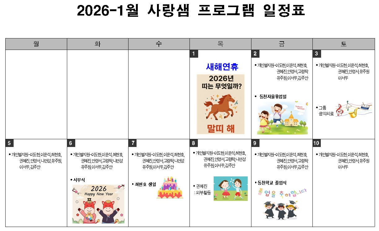 2026- 1월 사랑샘 프로그램 일정표